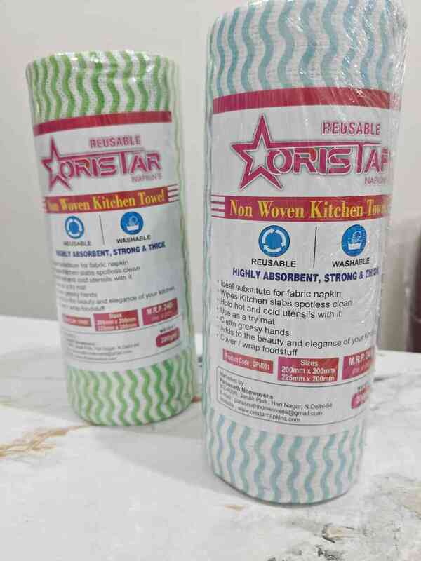 Kitchen Towel rolls for daily use • Highly absorbent tissues that soak up spills quickly • Washable and reusable again and again. • Made using 50 GSM non-woven fabric; 80 pulls per roll • Free from Optical Brightening Agent (OBA) • Reusable kitchen towels are free of any harsh chemicals and are completely food contact safe.